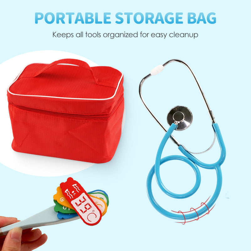 PORTABLE STORAGE BAG: Includes a handy medical bag to keep all the wooden instruments neatly organized. This makes cleanup quick and easy, while also teaching children responsibility and making the set perfectly portable.
